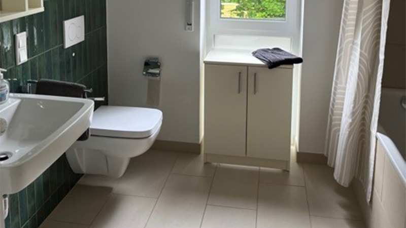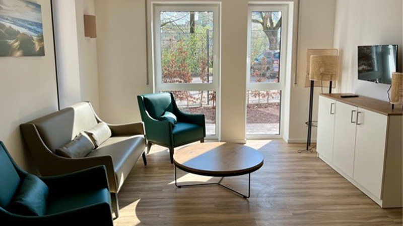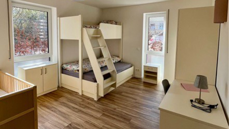 Das Frauenhaus bietet Platz für Frauen mit ihren Kindern. Jede Frau, die zu uns kommt, bewohnt ein eigenes Zimmer mit eigenem Bad. Es gibt insgesamt vier Wohngemeinschaften, für jeweils drei Familien. Eine voll ausgestattete Küche sowie ein Wohnzimmer stehen in jeder Wohngemeinschaft zur gemeinschaftlichen Nutzung bereit.