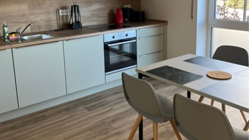 Das Frauenhaus bietet Platz für Frauen mit ihren Kindern. Jede Frau, die zu uns kommt, bewohnt ein eigenes Zimmer mit eigenem Bad. Es gibt insgesamt vier Wohngemeinschaften, für jeweils drei Familien. Eine voll ausgestattete Küche sowie ein Wohnzimmer stehen in jeder Wohngemeinschaft zur gemeinschaftlichen Nutzung bereit.